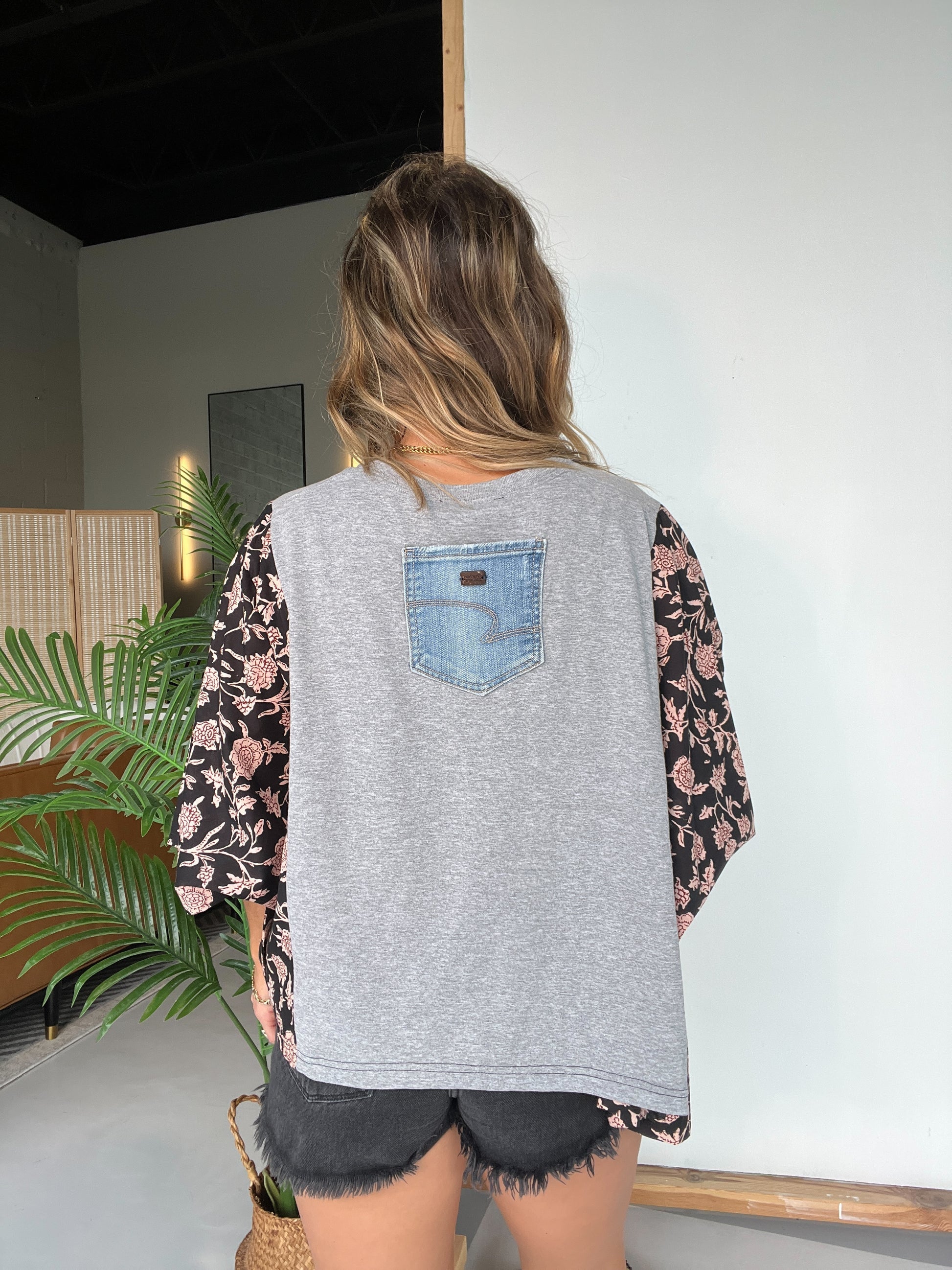 Washed Vintage Graphic Tee with Batwing Sleeve
