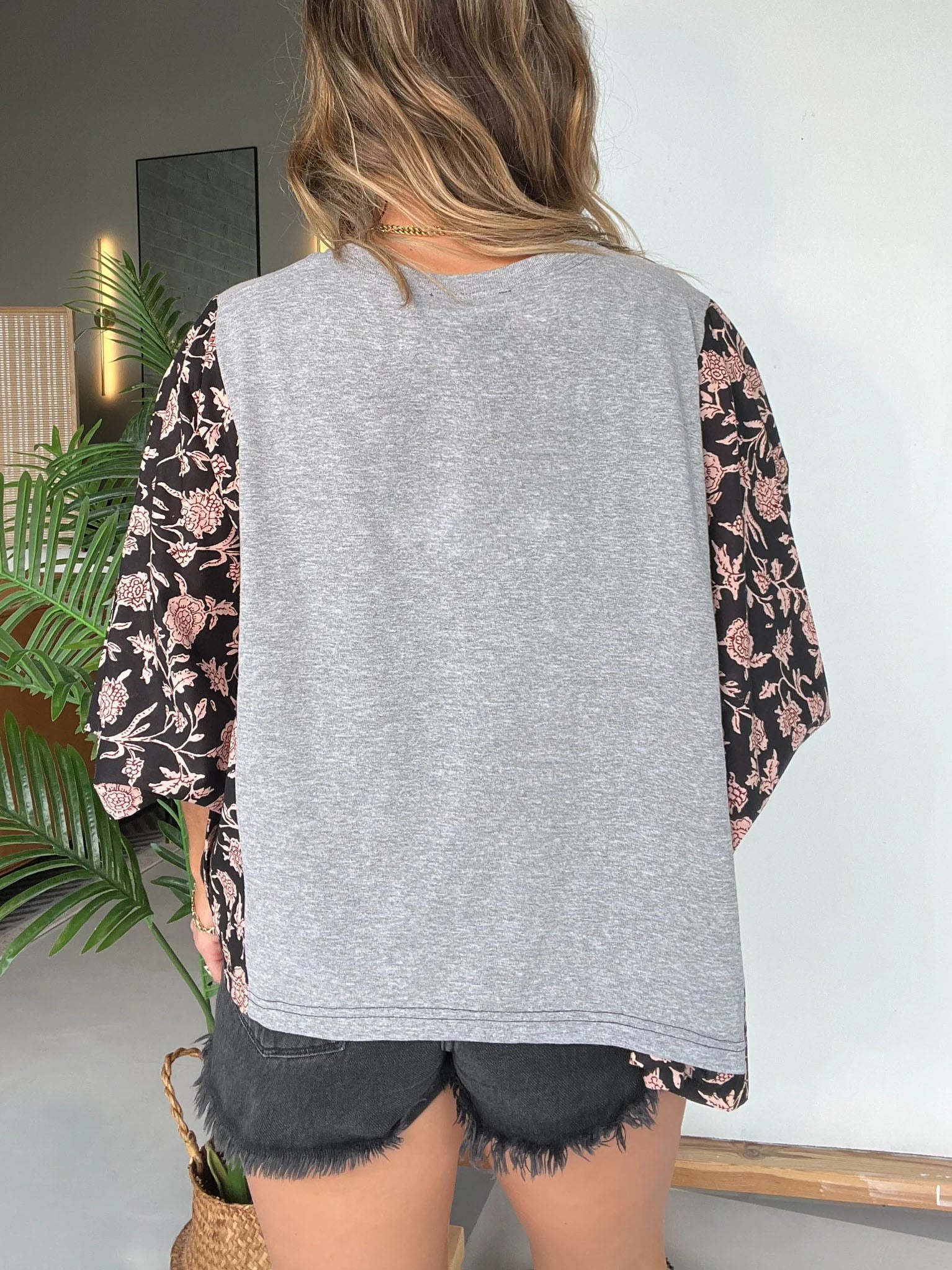 Washed Vintage Graphic Tee with Batwing Sleeve