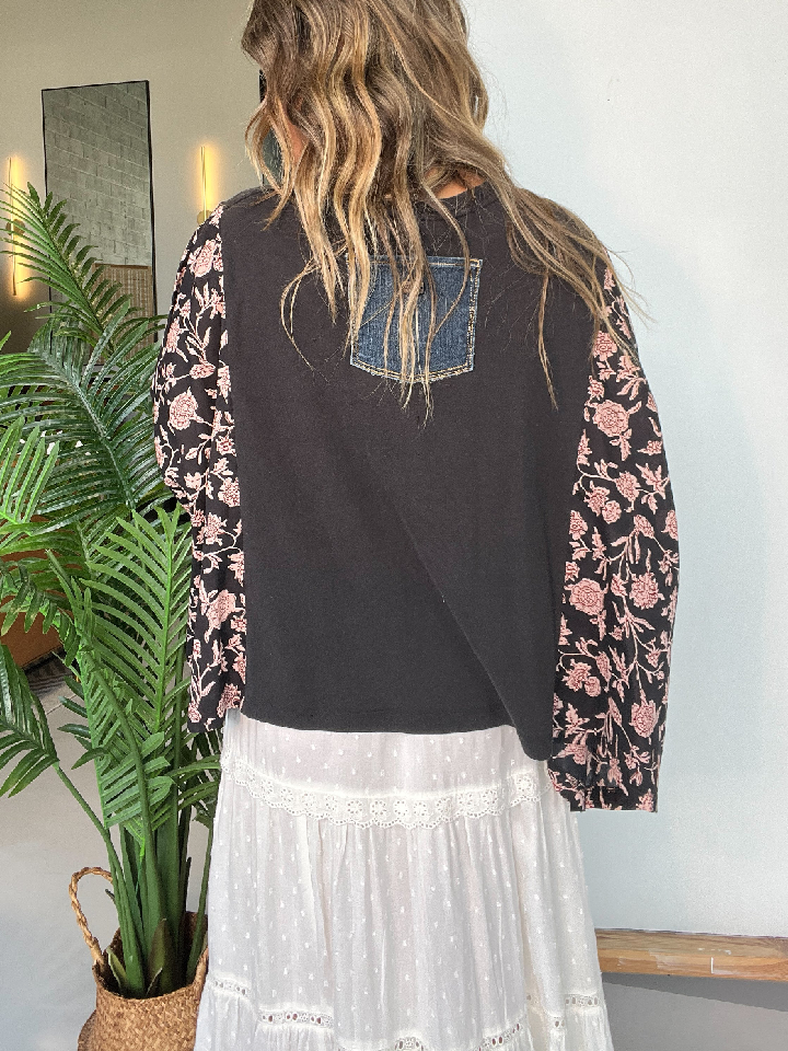Washed Vintage Graphic Tee with Batwing Sleeve