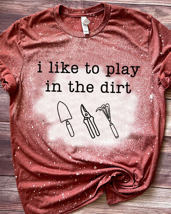 I Like To Play In The Dirt Funny Plant Mom Bleached T-Shirt
