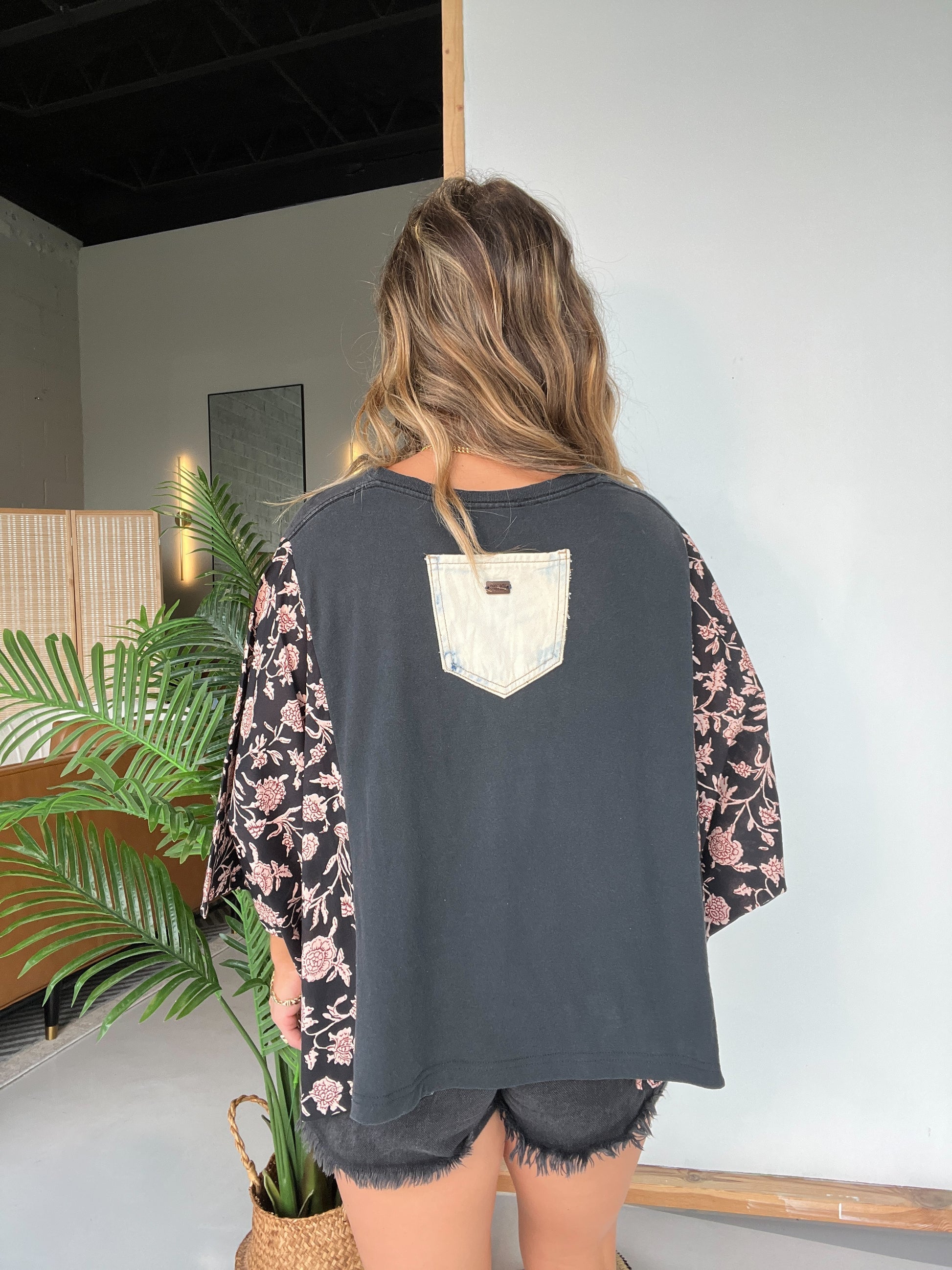 Washed Vintage Graphic Tee with Batwing Sleeve