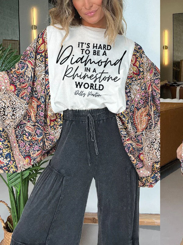 Washed Vintage Graphic Tee with Batwing Sleeve