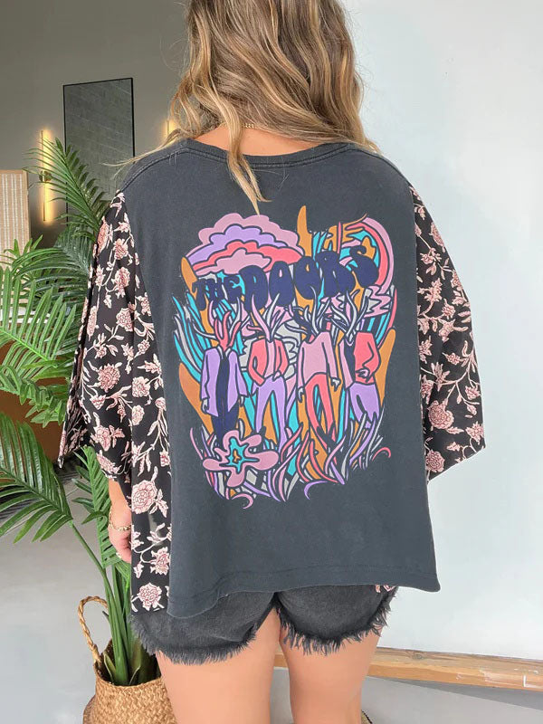 Washed Vintage Graphic Tee with Batwing Sleeve